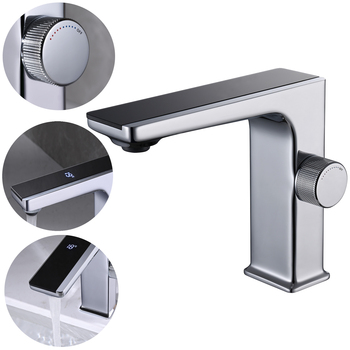 Lavabo batarya kolu sıcak atmosphydrohydropower gri/beyaz pirinç musluk tasarımı ile Modern tek-dijital ekran