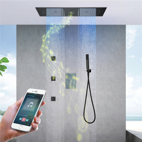 HIDEEP латунный потолочный встроенный 580*380 мм дождевой водопад 5 ручек термостатический черный светодиодный музыкальный смеситель для душа набор
